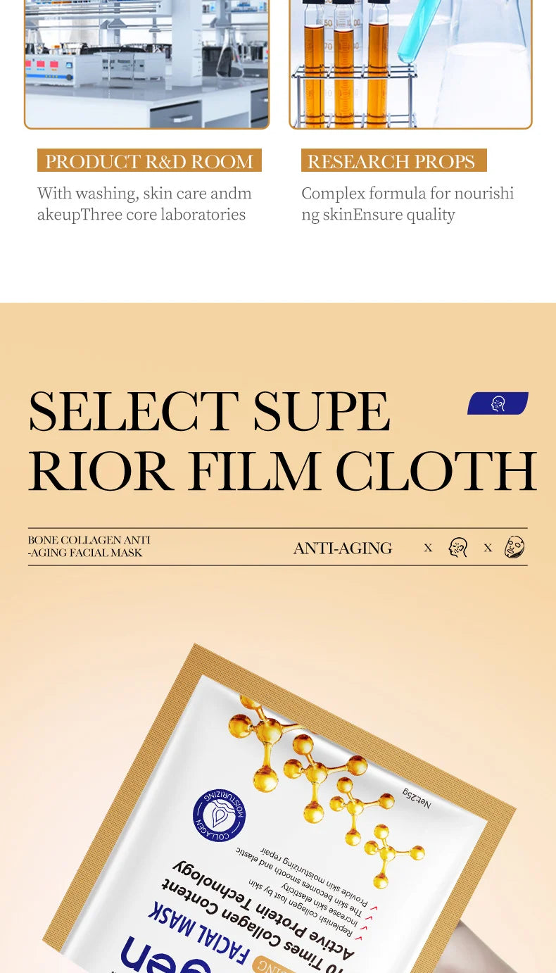 Masque Facial Anti-rides au collagène, 10 pièces, Anti-vieillissement